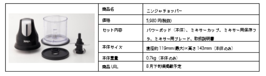 NINJA(ニンジャ)は世界販売台数1,300万台(※2)突破した大ヒットシリーズ。毎日のお料理からドリンク作りまで幅広くお楽しみいただける、切れ味にこだわった万能フードプロセッサーブランドです。「毎日、忙しくてお料理するのが面倒」、「刻み調理はとにかくしんどい」そのようなお客様の思いを解消する商品です。