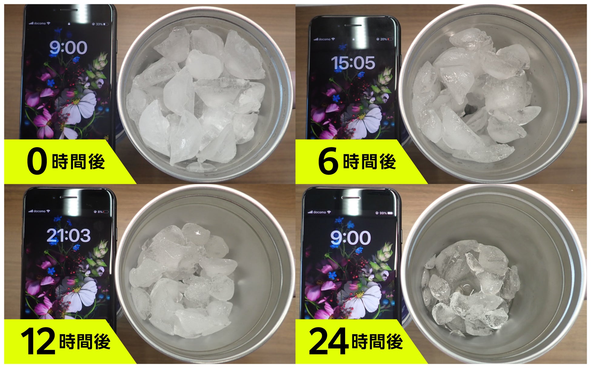 ご覧のように24時間経っても氷が残る高い保冷力が人気の秘密です。