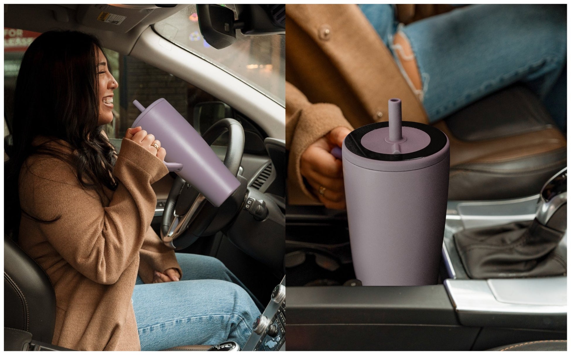 下部にそって細くなっていくなめらかなデザインで、車のカップホルダー*に入れて長時間のドライブにも冷たいドリンクが楽しめます。